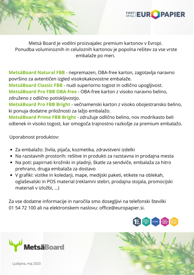 Predstavljamo voluminozne in celulozne kartone Metsä Board