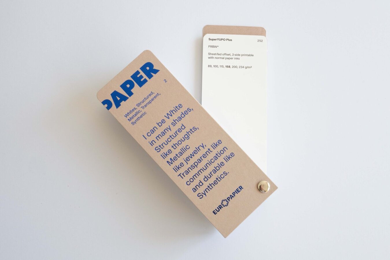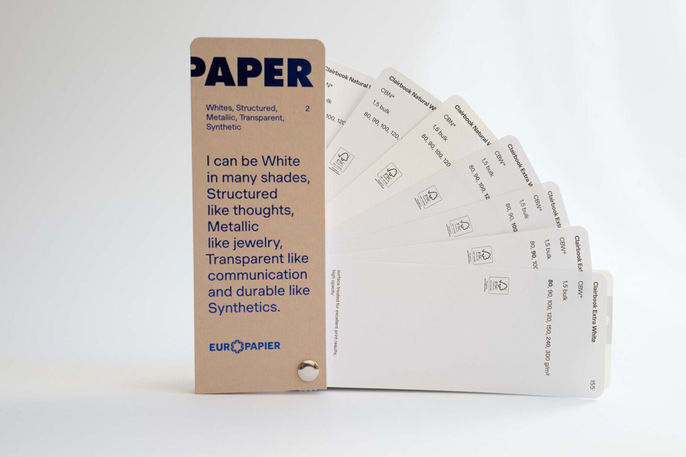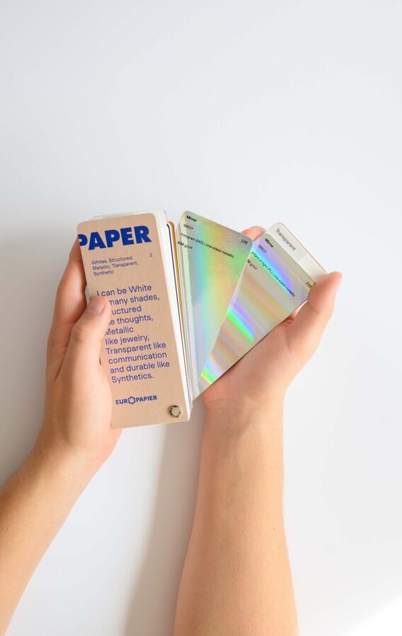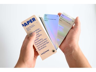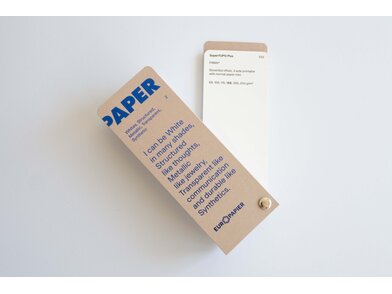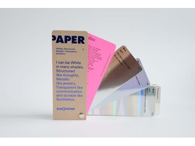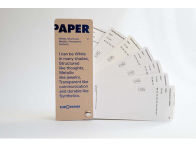 Katalog papirjev in kartonov Design Papers: belih in barvnih, gladkih in strukturiranih, ekoloških, metaliziranih in sintetičnih.