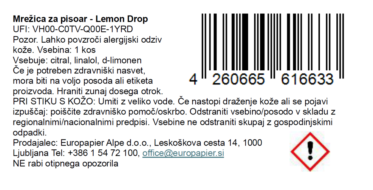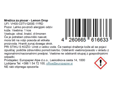 Mrežice za pisoar so narejene iz EVA (etilen vinil acetat) materiala in prijetno dišijo vsaj 30 dni.