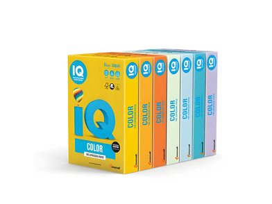 Znamka IQ predstavlja idealno kvaliteto vsestranskega papirja, ki zagotavlja visokokakovostne rezultate tiskanja. IQ color je primeren tako za manjše uporabnike kot za profesionalno uporabo. Linija ponuja širok nabor barv, gramatur in formatov. Svojo najljubšo barvo lahko izberete med 36 različnimi odtenki – od bledo roza do močnih, neonskih barv ter črne. IQ color je del Green Range linije, ki izpolnjuje zahteve strogih okoljskih certifikatov. Papir je odličen za uporabo v kopirnih strojih, laserskih in inkjet tiskalnikih.