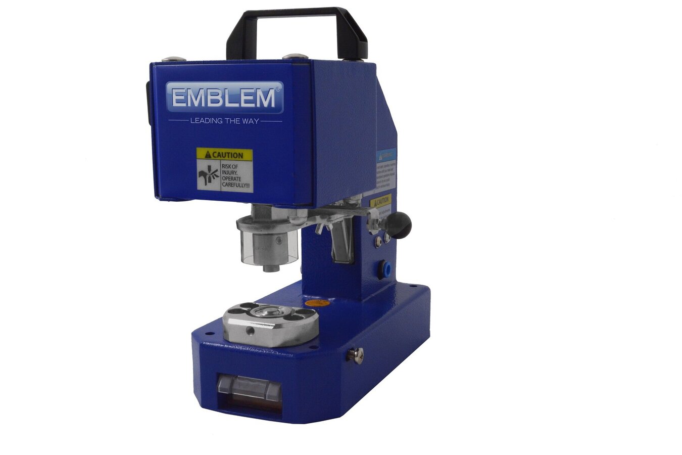 Emblem Easy Airpress Standard 4 HS je nadaljevanje razvoja uspešnega Easy Airpress Standard 3 z ročnim sproščanjem. Deluje z zunanjim kompresorjem z delovnim tlakom 6 barov (ni vključen). Pnevmatsko stiskanje očesc se izvede v enem postopku: v pasici prebodite luknje in pritisnite očesce. Izbirni kazalnik EyeLED vam pomaga namestiti očesce. Priložen je ohišju za baterijo in napajalni enoti. Točka EyeLED je prikazana na sredini spodnje strani posode za očesce in tako omogoča natančno namestitev očesca. Simbol Easy Airpress Standard 4 HS s kazalcem EyeLED, zložljivo spodnjo mizo in pripadajočimi posodami vam ponuja priročen način za enostavno prikrivanje pasic, tekstila in drugih materialov.